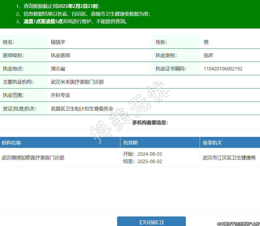 主要執(zhí)業(yè)機(jī)構(gòu):武漢米來(lái)醫(yī)療美容門(mén)診部