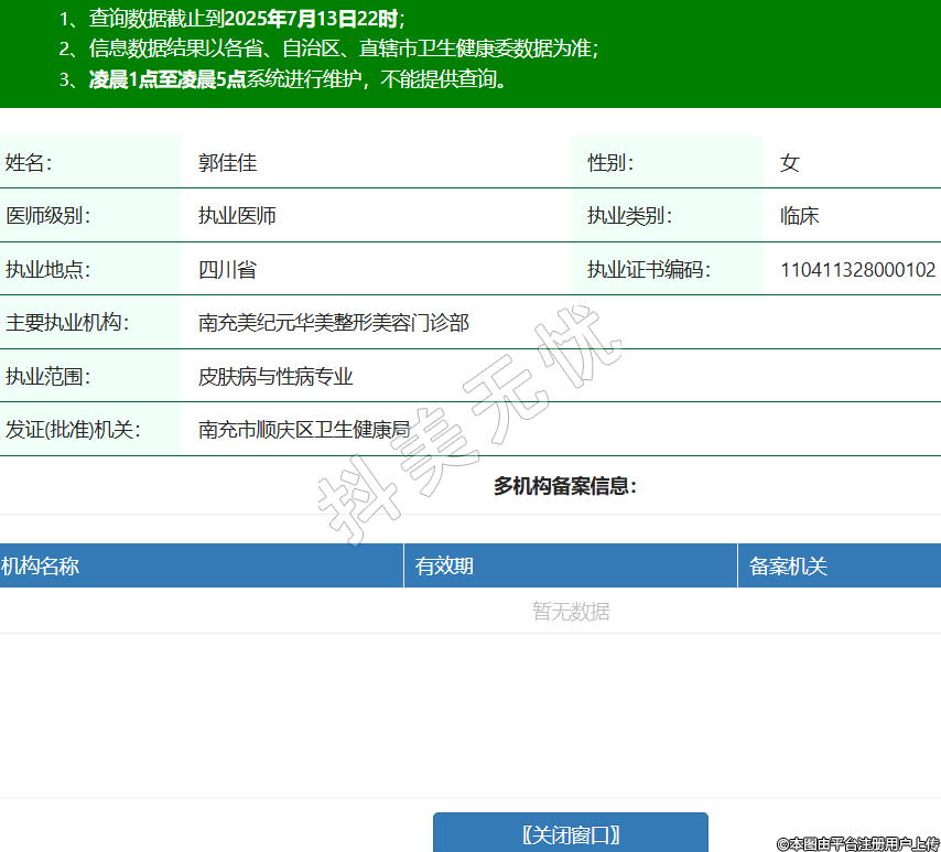 姓名:郭佳佳性別:女醫(yī)師級(jí)別:執(zhí)業(yè)醫(yī)師執(zhí)業(yè)類別:臨床執(zhí)業(yè)地點(diǎn):四川省執(zhí)業(yè)證書編碼:110411328000102主要執(zhí)業(yè)機(jī)構(gòu):南充美紀(jì)元華美整形美容門診部執(zhí)業(yè)范圍:皮膚病與性病專業(yè)發(fā)證(批準(zhǔn))機(jī)關(guān):南充市順慶區(qū)衛(wèi)生健康局 -