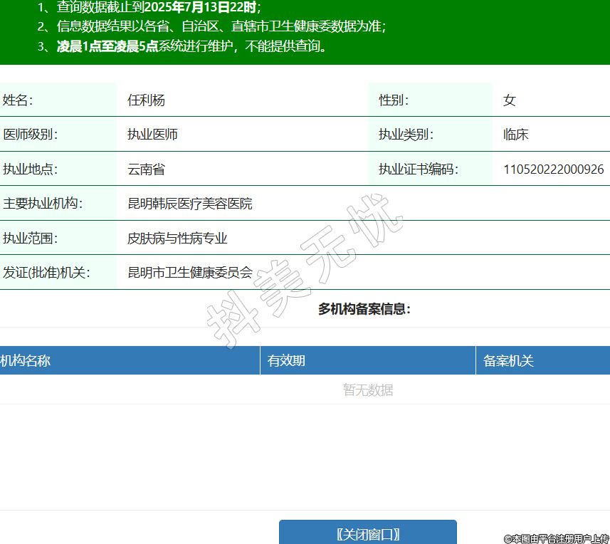 姓名:任利楊性別:女醫(yī)師級(jí)別:執(zhí)業(yè)醫(yī)師執(zhí)業(yè)類別:臨床執(zhí)業(yè)地點(diǎn):云南省執(zhí)業(yè)證書編碼:110520222000926主要執(zhí)業(yè)機(jī)構(gòu):昆明韓辰醫(yī)療美容醫(yī)院執(zhí)業(yè)范圍:皮膚病與性病專業(yè)發(fā)證(批準(zhǔn))機(jī)關(guān):昆明市衛(wèi)生健康委員會(huì) -
