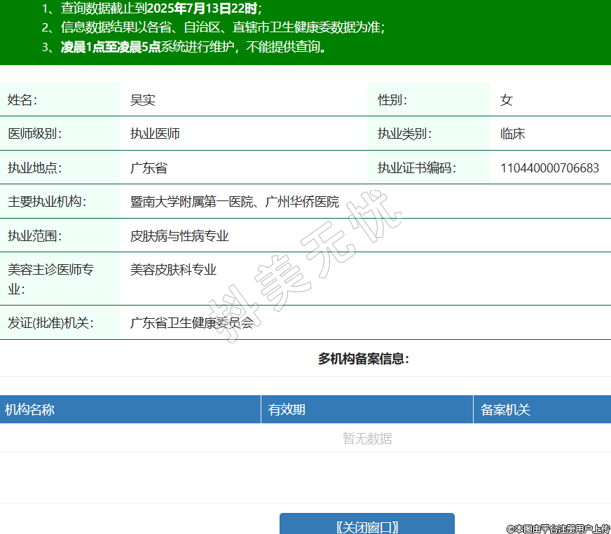 姓名:吳實性別:女醫(yī)師級別:執(zhí)業(yè)醫(yī)師執(zhí)業(yè)類別:臨床執(zhí)業(yè)地點:廣東省執(zhí)業(yè)證書編碼:110440000706683主要執(zhí)業(yè)機構(gòu):暨南大學附屬第一醫(yī)院、廣州華僑醫(yī)院執(zhí)業(yè)范圍:皮膚病與性病專業(yè)美容主診醫(yī)師專業(yè):美容皮膚科專業(yè)發(fā)證(批準)機關(guān):廣東省衛(wèi)生健康委員會 -