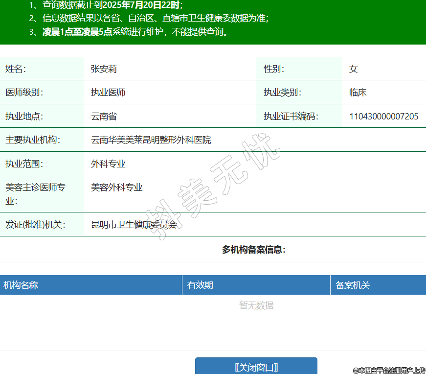 姓名:張安莉性別:女醫(yī)師級別:執(zhí)業(yè)醫(yī)師執(zhí)業(yè)類別:臨床執(zhí)業(yè)地點:云南省執(zhí)業(yè)證書編碼:110430000007205主要執(zhí)業(yè)機構(gòu):云南華美美萊昆明整形外科醫(yī)院執(zhí)業(yè)范圍:外科專業(yè)美容主診醫(yī)師專業(yè):美容外科專業(yè)發(fā)證(批準(zhǔn))機關(guān):昆明市衛(wèi)生健康委員會 -