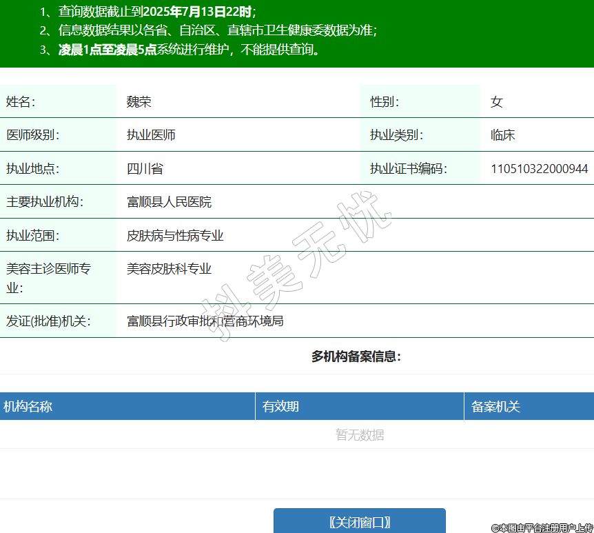 姓名:魏榮性別:女醫(yī)師級(jí)別:執(zhí)業(yè)醫(yī)師執(zhí)業(yè)類別:臨床執(zhí)業(yè)地點(diǎn):四川省執(zhí)業(yè)證書編碼:110510322000944主要執(zhí)業(yè)機(jī)構(gòu):富順縣人民醫(yī)院執(zhí)業(yè)范圍:皮膚病與性病專業(yè)美容主診醫(yī)師專業(yè):美容皮膚科專業(yè)發(fā)證(批準(zhǔn))機(jī)關(guān):富順縣行政審批和營商環(huán)境局 -