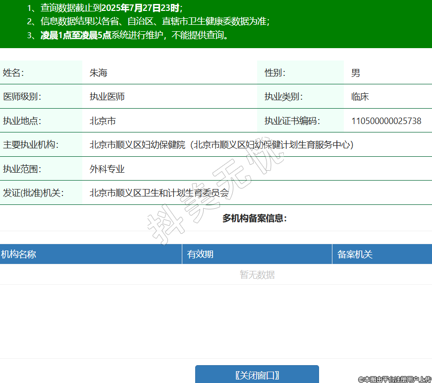 姓名:朱海性別:男醫(yī)師級別:執(zhí)業(yè)醫(yī)師執(zhí)業(yè)類別:臨床執(zhí)業(yè)地點:北京市執(zhí)業(yè)證書編碼:110500000025738主要執(zhí)業(yè)機構:北京市順義區(qū)婦幼保健院(北京市順義區(qū)婦幼保健計劃生育服務中心)執(zhí)業(yè)范圍:外科專業(yè)發(fā)證(批準)機關:北京市順義區(qū)衛(wèi)生和計劃生育委員會 -