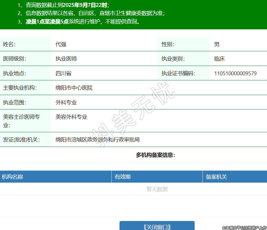 姓名:代強性別:男醫(yī)師級別:執(zhí)業(yè)醫(yī)師執(zhí)業(yè)類別:臨床執(zhí)業(yè)地點:四川省執(zhí)業(yè)證書編碼:110510000009579主要執(zhí)業(yè)機構(gòu):綿陽市中心醫(yī)院執(zhí)業(yè)范圍:外科專業(yè)美容主診醫(yī)師專業(yè):美容外科專業(yè)發(fā)證(批準)機關(guān):綿陽市涪城區(qū)政務(wù)服務(wù)和行政審批局 -