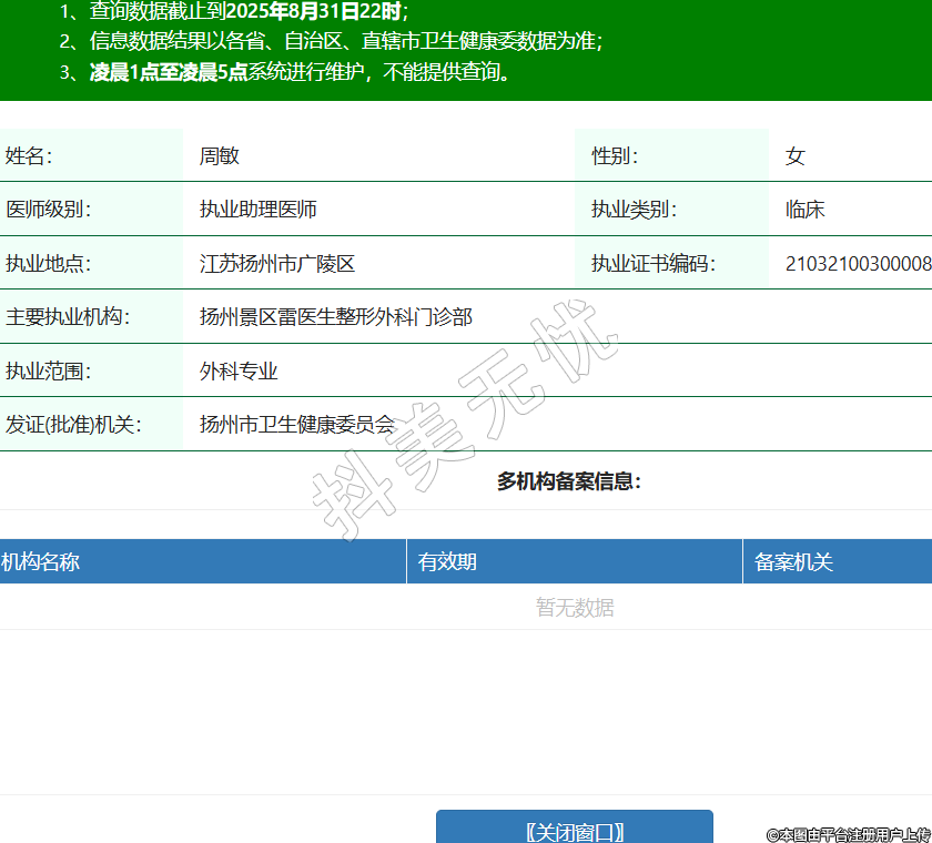 姓名:周敏性別:女醫(yī)師級別:執(zhí)業(yè)助理醫(yī)師執(zhí)業(yè)類別:臨床執(zhí)業(yè)地點:江蘇揚州市廣陵區(qū)執(zhí)業(yè)證書編碼:210321003000083主要執(zhí)業(yè)機構(gòu):揚州景區(qū)雷醫(yī)生整形外科門診部執(zhí)業(yè)范圍:外科專業(yè)發(fā)證(批準)機關:揚州市衛(wèi)生健康委員會 -