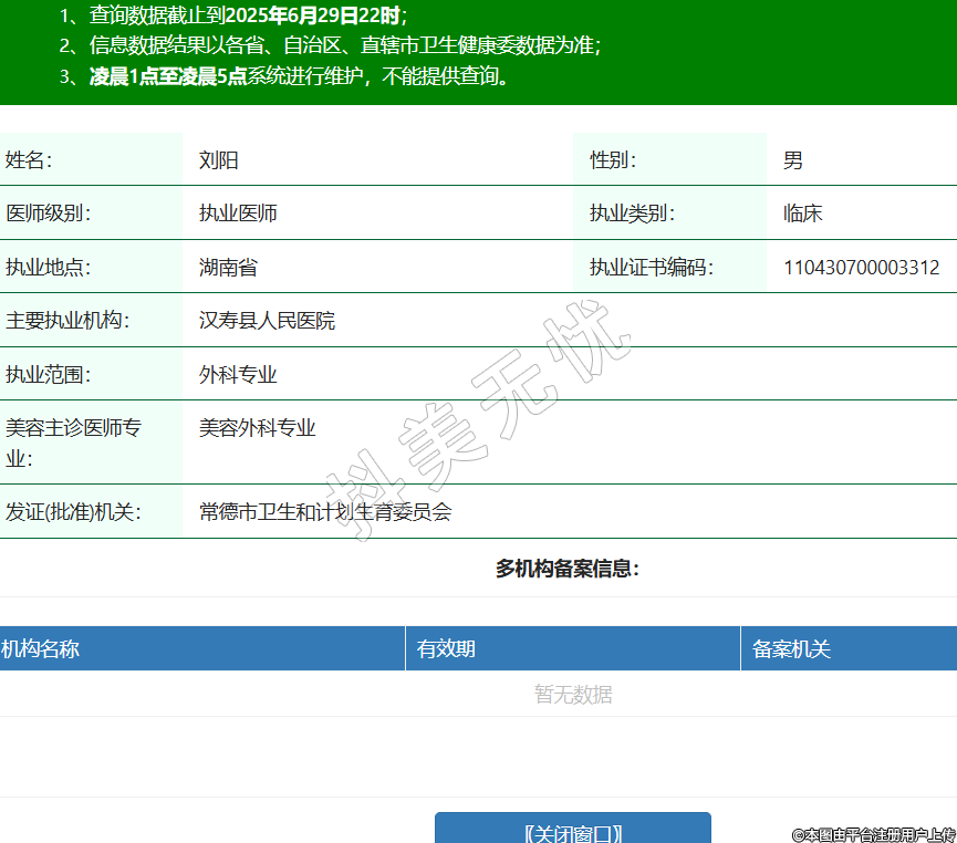 姓名:劉陽性別:男醫(yī)師級(jí)別:執(zhí)業(yè)醫(yī)師執(zhí)業(yè)類別:臨床執(zhí)業(yè)地點(diǎn):湖南省執(zhí)業(yè)證書編碼:110430700003312主要執(zhí)業(yè)機(jī)構(gòu):漢壽縣人民醫(yī)院執(zhí)業(yè)范圍:外科專業(yè)美容主診醫(yī)師專業(yè):美容外科專業(yè)發(fā)證(批準(zhǔn))機(jī)關(guān):常德市衛(wèi)生和計(jì)劃生育委員會(huì) -