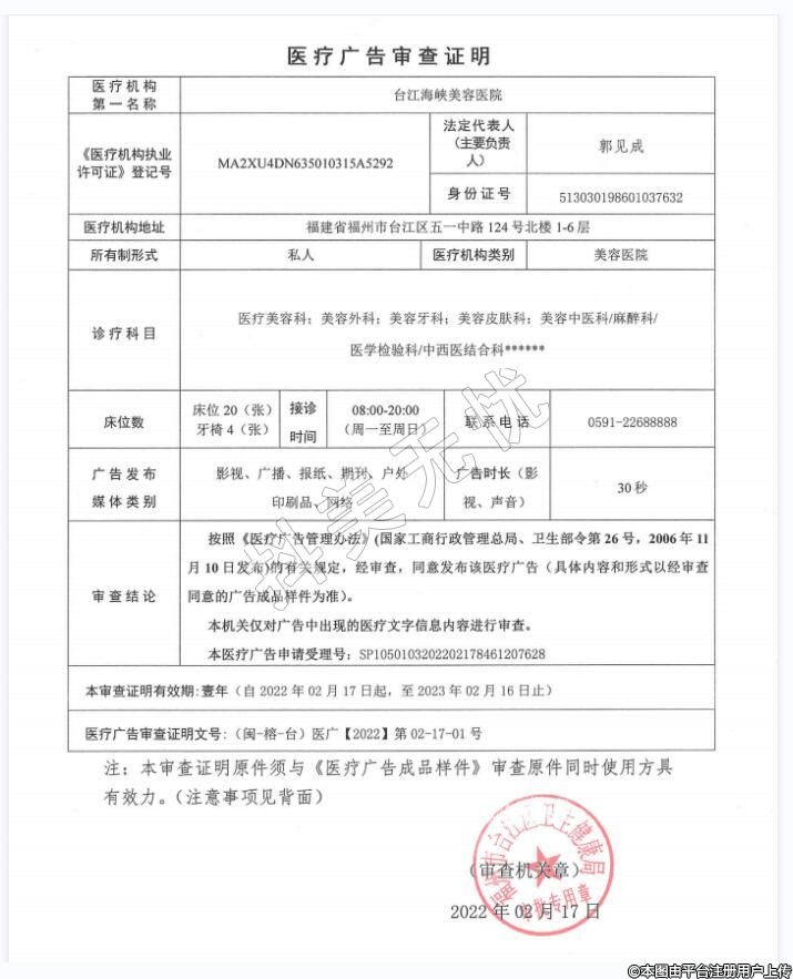 醫(yī)療機(jī)構(gòu)名稱:臺(tái)江海峽美容醫(yī)院