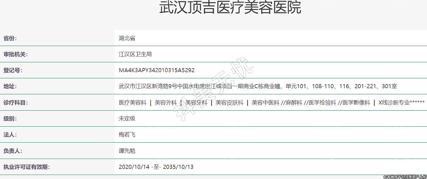 武漢頂吉醫(yī)療美容成立于2019-03-15,地址:武漢市江漢區(qū)新灣路9號中國水電盛世江城項目一期商業(yè)C棟商業(yè)幢、單元101、108-110、116、201-221、301室,診療科目:醫(yī)療美容科 | 美容外科 | 美容牙科 | 美容皮膚科 | 美容中醫(yī)科 //麻醉科 //醫(yī)學(xué)檢驗科 //醫(yī)學(xué)影像科 | X線診斷專業(yè)******