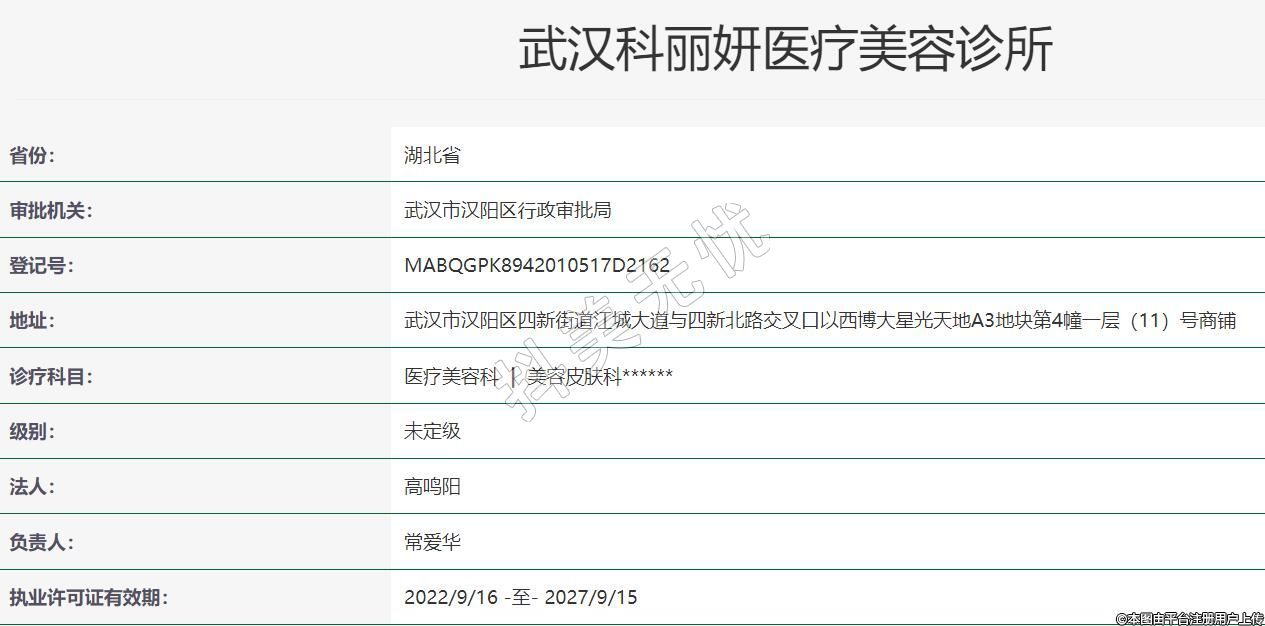武漢科麗妍醫(yī)療美容2022年06月14日成立,地址:武漢市漢陽區(qū)四新街道江城大道與四新北路交叉口以西博大星光天地A3地塊第4幢一層(11)號商鋪,診療科目:醫(yī)療美容科 | 美容皮膚科******