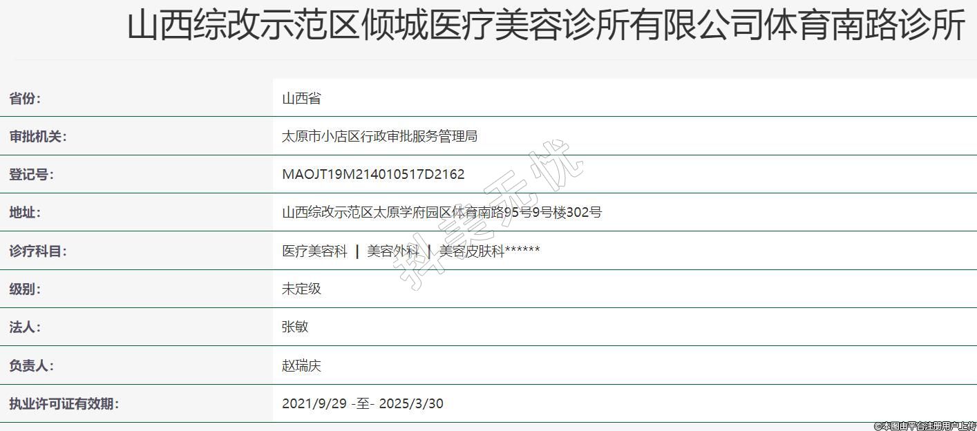 山西綜改示范區(qū)傾城醫(yī)療美容診所有限公司體育南路診所