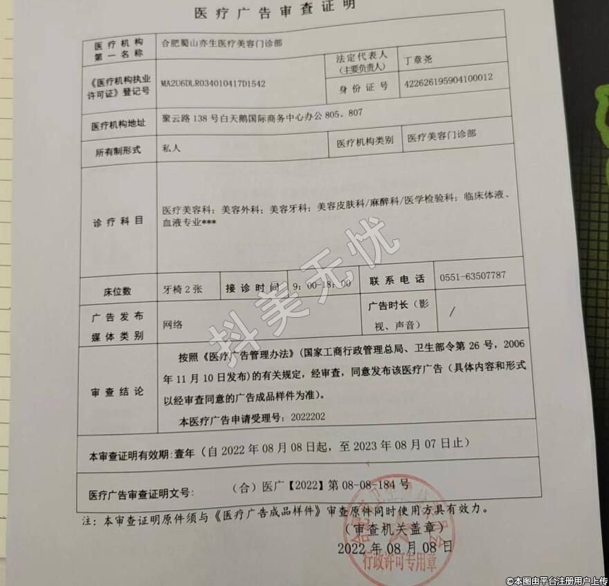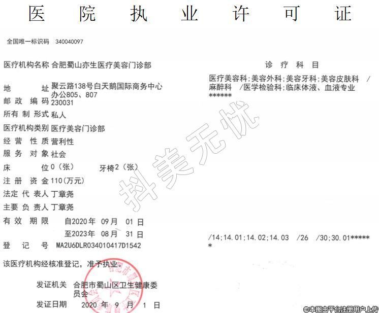 發(fā)證機關(guān):合肥市蜀山區(qū)衛(wèi)生健康委員會