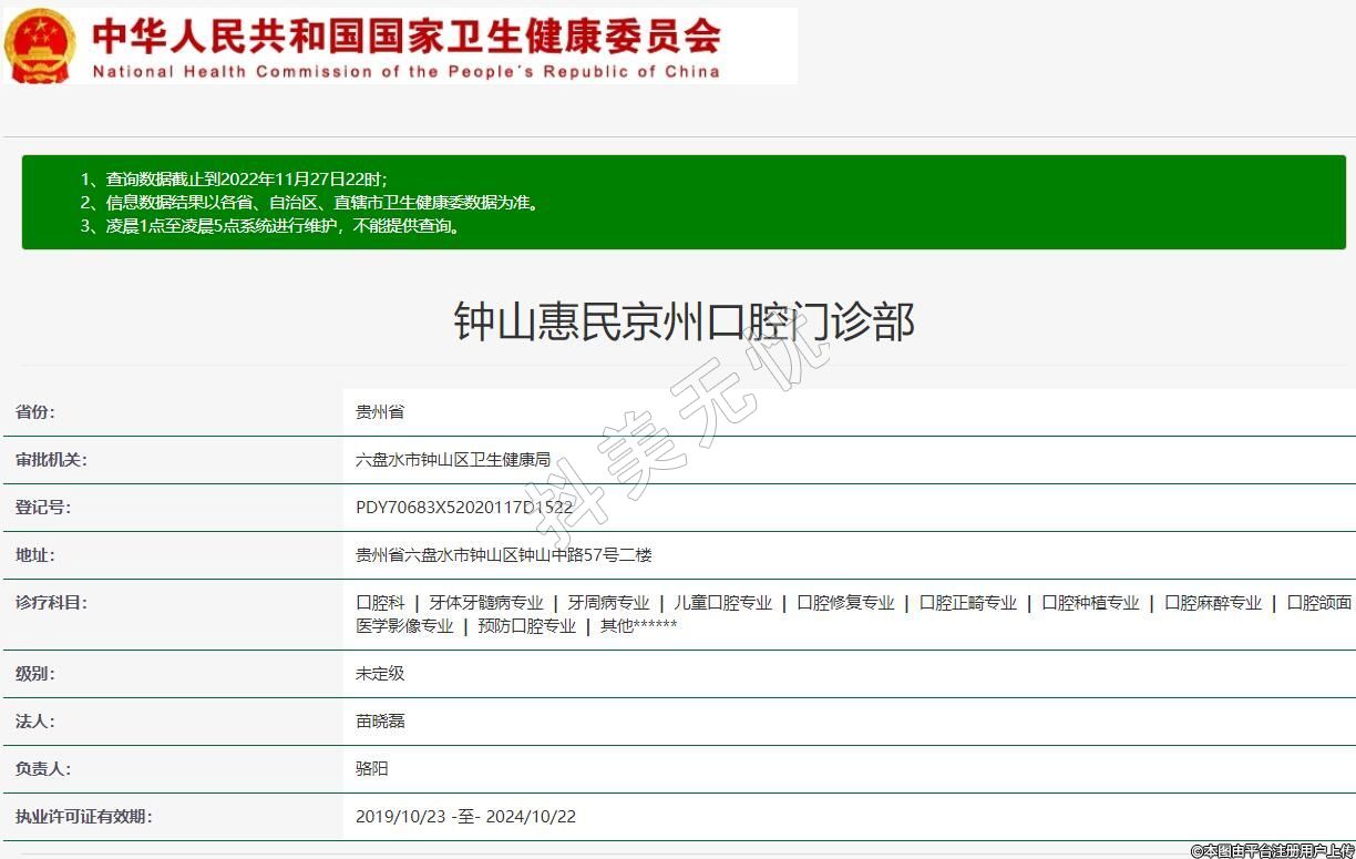 審批機關:六盤水市鐘山區(qū)衛(wèi)生健康局