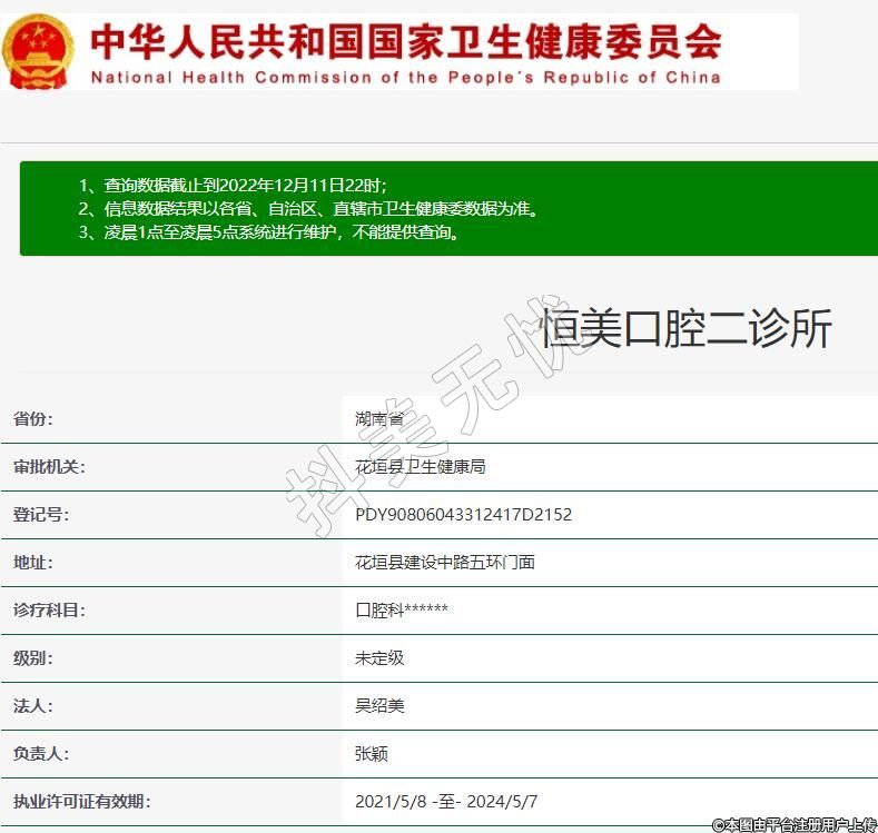 湘西恒美口腔(五環(huán)門面),診療科目:口腔科******