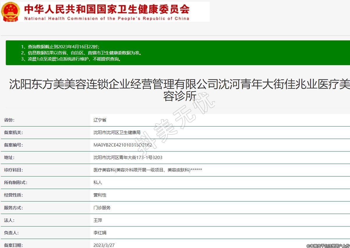 沈陽(yáng)東方美美容連鎖企業(yè)經(jīng)營(yíng)管理有限公司沈河青年大街佳兆業(yè)醫(yī)療美容診所
