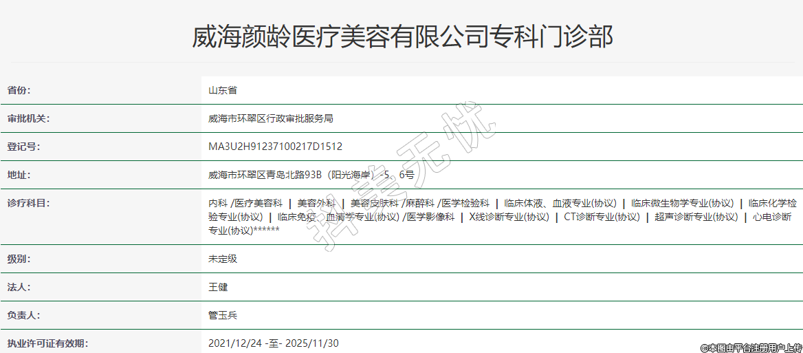 威海顏齡醫(yī)療美容有限公司??崎T診部