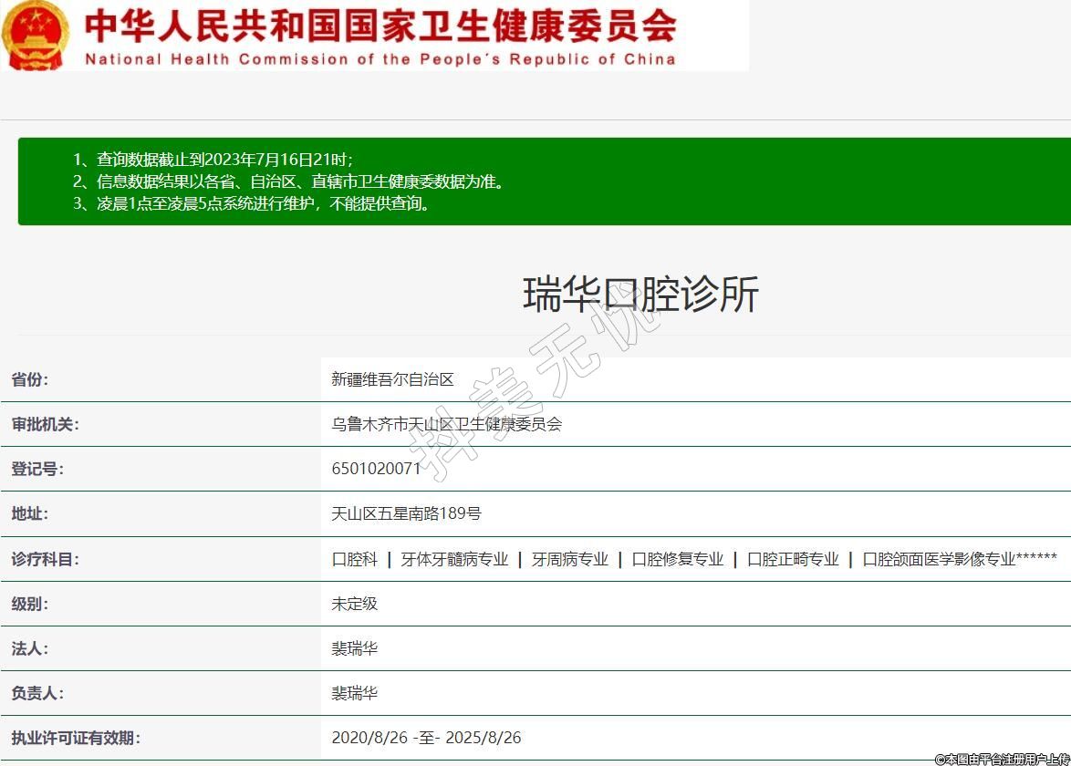 審批機關:烏魯木齊市天山區(qū)衛(wèi)生健康委員會