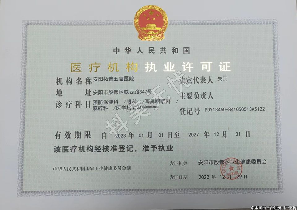 執(zhí)業(yè)許可證有效期:2023年01月01日至2027年12月31日