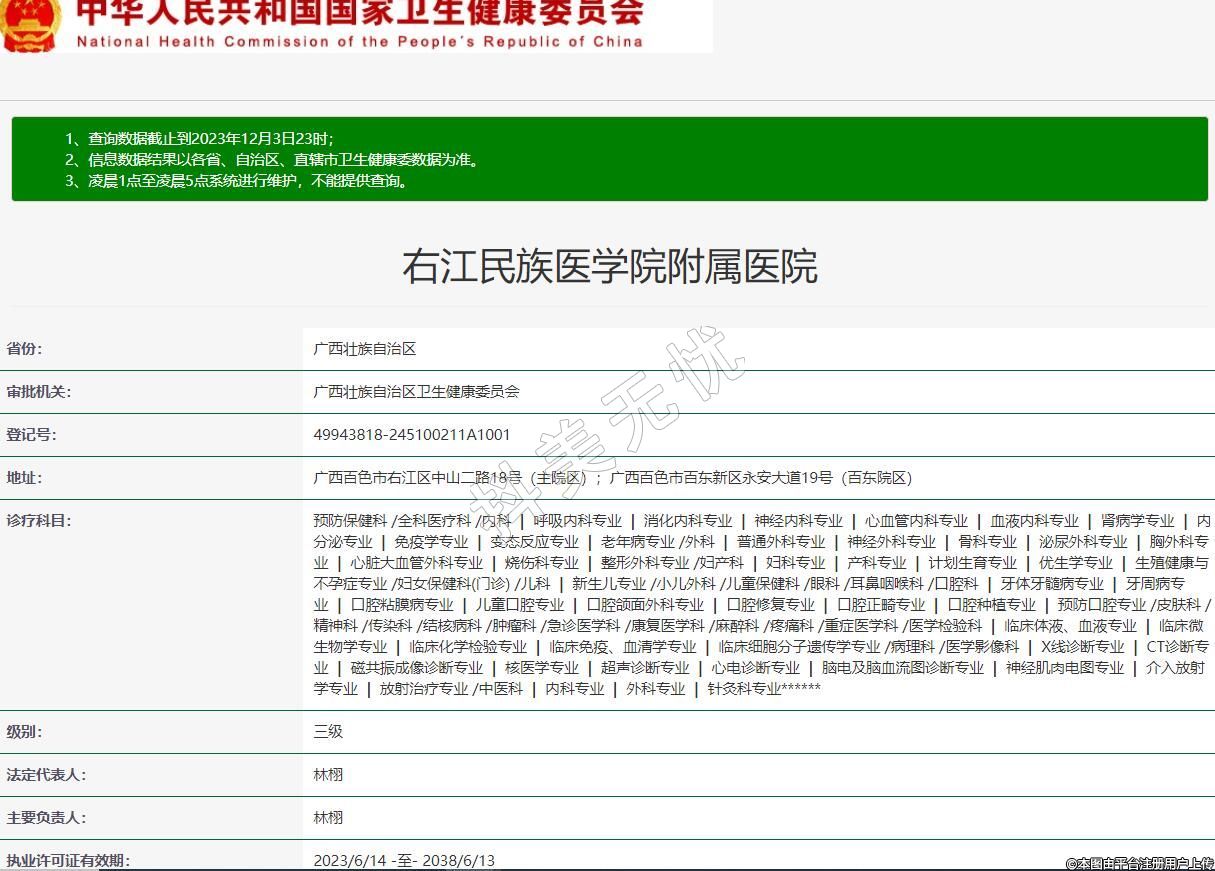 地址:廣西百色市右江區(qū)中山二路18號(hào)(主院區(qū));廣西百色市百東新區(qū)永安大道19號(hào)(百東院區(qū))