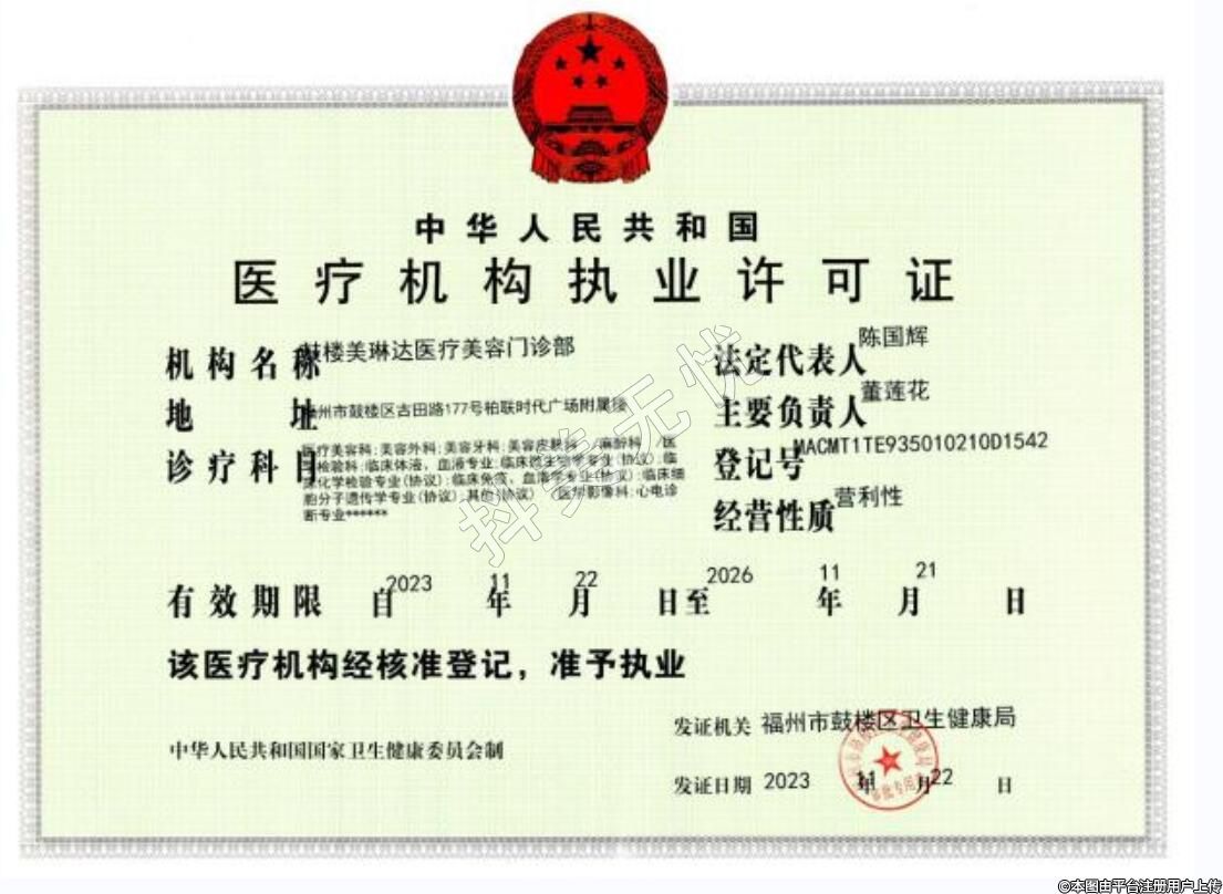 發(fā)證機關(guān)::福州市鼓樓區(qū)衛(wèi)生健康局