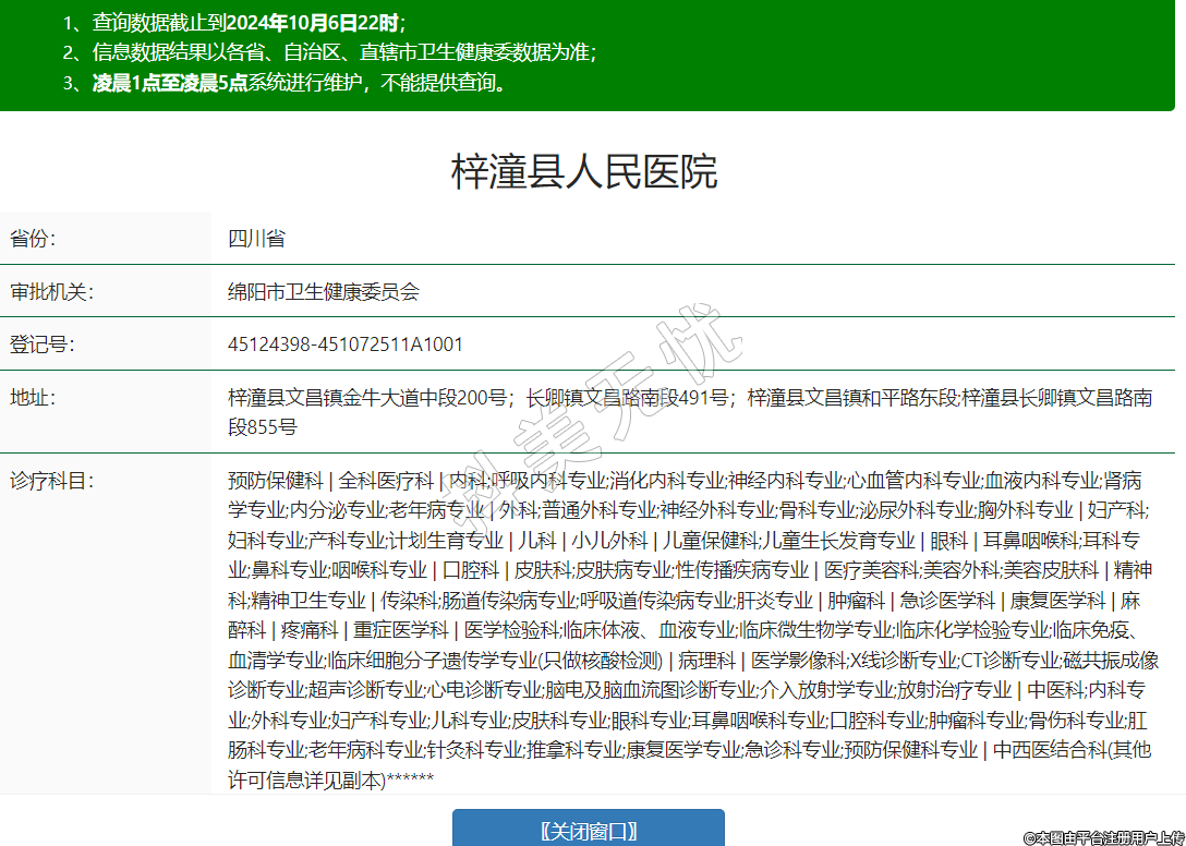 預(yù)防保健科 | 全科醫(yī)療科 | 內(nèi)科;呼吸內(nèi)科專業(yè);消化內(nèi)科專業(yè);神經(jīng)內(nèi)科專業(yè);心血管內(nèi)科專業(yè);血液內(nèi)科專業(yè);腎病學(xué)專業(yè);內(nèi)分泌專業(yè);老年病專業(yè) | 外科;普通外科專業(yè);神經(jīng)外科專業(yè);骨科專業(yè);泌尿外科專業(yè);胸外科專業(yè) | 婦產(chǎn)科;婦科專業(yè);產(chǎn)科專業(yè);計(jì)劃生育專業(yè) | 兒科 | 小兒外科 | 兒童保健科;兒童生長發(fā)育專業(yè) | 眼科 | 耳鼻咽喉科;耳科專業(yè);鼻科專業(yè);咽喉科專業(yè) | 口腔科 | 皮膚科;皮膚病專業(yè);性傳播疾病專業(yè) | 醫(yī)療美容科;美容外科;美容皮膚科 | 精神科;精神衛(wèi)生專業(yè) | 傳染科;腸道傳染病專業(yè);呼吸道傳染病專業(yè);肝炎專業(yè) | 腫瘤科 | 急診醫(yī)學(xué)科 | 康復(fù)醫(yī)學(xué)科 | 麻醉科 | 疼痛科 | 重癥醫(yī)學(xué)科 | 醫(yī)學(xué)檢驗(yàn)科;臨床體液、血液專業(yè);臨床微生物學(xué)專業(yè);臨床化學(xué)檢驗(yàn)專業(yè);臨床免疫、血清學(xué)專業(yè);臨床細(xì)胞分子遺傳學(xué)專業(yè)(只做核酸檢測) | 病理科 | 醫(yī)學(xué)影像科;X線診斷專業(yè);CT診斷專業(yè);磁共振成像診斷專業(yè);超聲診斷專業(yè);心電診斷專業(yè);腦電及腦血流圖診斷專業(yè);介入放射學(xué)專業(yè);放射治療專業(yè) | 中醫(yī)科;內(nèi)科專業(yè);外科專業(yè);婦產(chǎn)科專業(yè);兒科專業(yè);皮膚科專業(yè);眼科專業(yè);耳鼻咽喉科專業(yè);口腔科專業(yè);腫瘤科專業(yè);骨傷科專業(yè);肛腸科專業(yè);老年病科專業(yè);針灸科專業(yè);推拿科專業(yè);康復(fù)醫(yī)學(xué)專業(yè);急診科專業(yè);預(yù)防保健科專業(yè) | 中西醫(yī)結(jié)合科(其他許可信息詳見副本)******