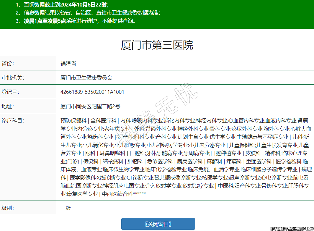 預(yù)防保健科 | 全科醫(yī)療科 | 內(nèi)科;呼吸內(nèi)科專業(yè);消化內(nèi)科專業(yè);神經(jīng)內(nèi)科專業(yè);心血管內(nèi)科專業(yè);血液內(nèi)科專業(yè);腎病學(xué)專業(yè);內(nèi)分泌專業(yè);老年病專業(yè) | 外科;普通外科專業(yè);神經(jīng)外科專業(yè);骨科專業(yè);泌尿外科專業(yè);胸外科專業(yè);心臟大血管外科專業(yè);燒傷科專業(yè) | 婦產(chǎn)科;婦科專業(yè);產(chǎn)科專業(yè);計(jì)劃生育專業(yè);優(yōu)生學(xué)專業(yè);生殖健康與不孕癥專業(yè) | 兒科;新生兒專業(yè);小兒消化專業(yè);小兒呼吸專業(yè);小兒神經(jīng)病學(xué)專業(yè);小兒內(nèi)分泌專業(yè) | 兒童保健科;兒童生長(zhǎng)發(fā)育專業(yè);兒童營(yíng)養(yǎng)專業(yè) | 眼科 | 耳鼻咽喉科 | 口腔科;牙體牙髓病專業(yè);牙周病專業(yè);口腔種植專業(yè) | 皮膚科 | 精神科;臨床心理專業(yè)(門診) | 傳染科 | 結(jié)核病科 | 腫瘤科 | 急診醫(yī)學(xué)科 | 康復(fù)醫(yī)學(xué)科 | 麻醉科 | 疼痛科 | 重癥醫(yī)學(xué)科 | 醫(yī)學(xué)檢驗(yàn)科;臨床體液、血液專業(yè);臨床微生物學(xué)專業(yè);臨床化學(xué)檢驗(yàn)專業(yè);臨床免疫、血清學(xué)專業(yè);臨床細(xì)胞分子遺傳學(xué)專業(yè) | 病理科 | 醫(yī)學(xué)影像科;X線診斷專業(yè);CT診斷專業(yè);磁共振成像診斷專業(yè);核醫(yī)學(xué)專業(yè);超聲診斷專業(yè);心電診斷專業(yè);腦電及腦血流圖診斷專業(yè);神經(jīng)肌肉電圖專業(yè);介入放射學(xué)專業(yè);放射治療專業(yè) | 中醫(yī)科;婦產(chǎn)科專業(yè);骨傷科專業(yè);肛腸科專業(yè);康復(fù)醫(yī)學(xué)專業(yè) | 中西醫(yī)結(jié)合科******