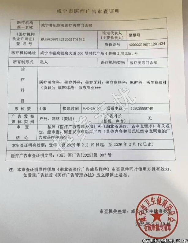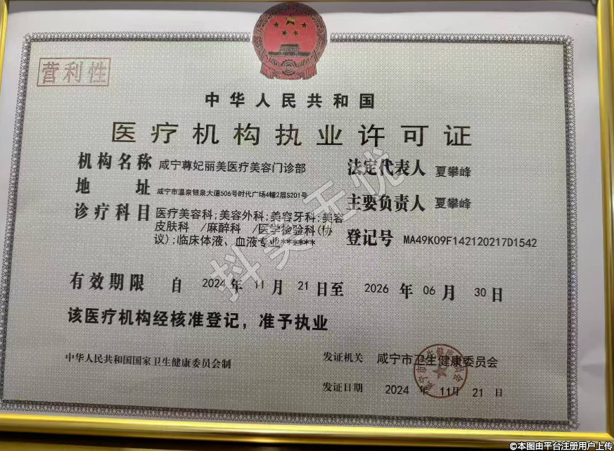 機(jī)構(gòu)稱:咸寧尊妃麗美醫(yī)療美容門診部