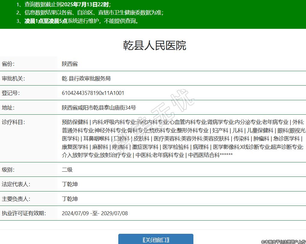 省份:陜西省審批機(jī)關(guān):乾 縣行政審批服務(wù)局登記號(hào):61042443578190x11A1001地址:陜西省咸陽市乾縣泰山廟街34號(hào)診療科目:預(yù)防保健科 | 內(nèi)科;呼吸內(nèi)科專業(yè);消化內(nèi)科專業(yè);心血管內(nèi)科專業(yè);腎病學(xué)專業(yè);內(nèi)分泌專業(yè);老年病專業(yè) | 外科;普通外科專業(yè);神經(jīng)外科專業(yè);骨科專業(yè);燒傷科專業(yè);整形外科專業(yè) | 婦產(chǎn)科 | 兒科 | 兒童保健科 | 眼科(眼視光醫(yī)學(xué)科) | 耳鼻咽喉科 | 口腔科 | 皮膚科 | 醫(yī)療美容科;美容外科;美容皮膚科 | 傳染科 | 腫瘤科 | 急診醫(yī)學(xué)科 | 康復(fù)醫(yī)學(xué)科 | 麻醉科 | 疼痛科 | 重癥醫(yī)學(xué)科 | 醫(yī)學(xué)檢驗(yàn)科 | 病理科 | 醫(yī)學(xué)影像科;X線診斷專業(yè);超聲診斷專業(yè);介入放射學(xué)專業(yè);放射治療專業(yè) | 中醫(yī)科;老年病科專業(yè) | 中西醫(yī)結(jié)合科******級(jí)別:二級(jí)法定代表人:丁乾坤主要負(fù)責(zé)人:丁乾坤執(zhí)業(yè)許可證有效期:2024/07/09 -至- 2029/07/08 -