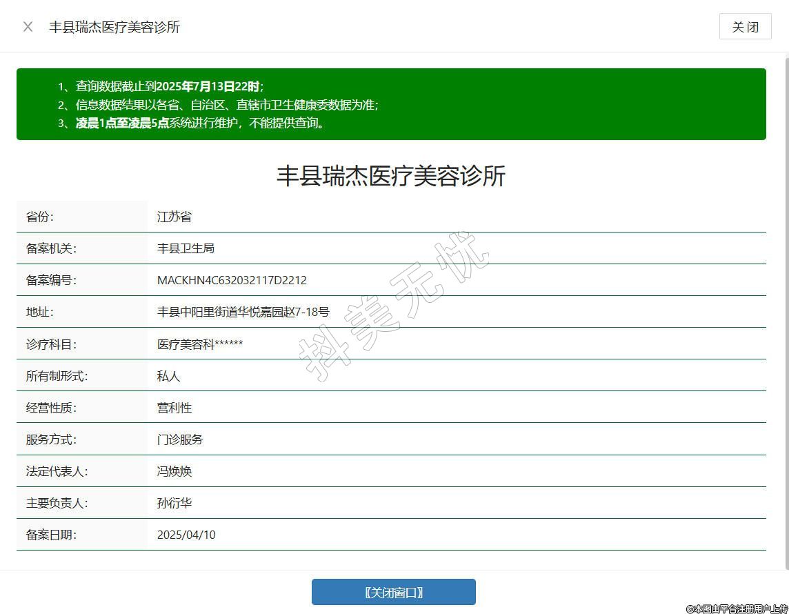 豐縣瑞杰醫(yī)療美容診所創(chuàng)辦于2023年,坐落于徐州市豐縣中陽里街道華悅嘉園趙7-18號,設(shè)皮膚美容、微整形等科室,專注面部精雕、抗衰煥膚、光電美膚及微創(chuàng)塑形領(lǐng)域,由資深醫(yī)師團(tuán)隊主理,配備認(rèn)證設(shè)備與智能分析系統(tǒng),嚴(yán)格遵循醫(yī)療質(zhì)控標(biāo)準(zhǔn)。