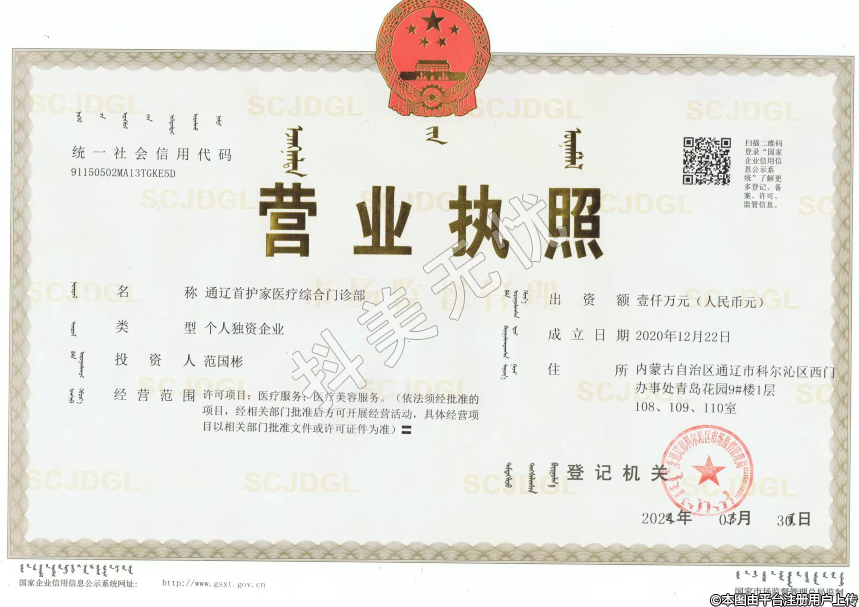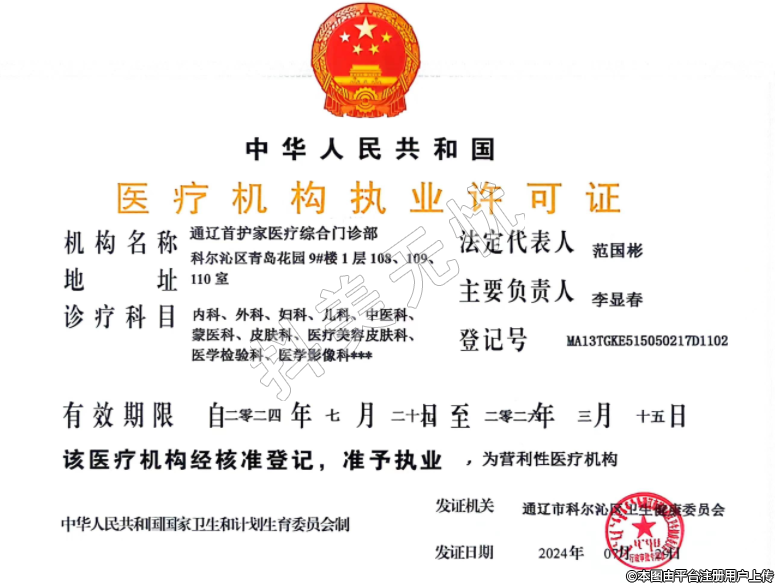 發(fā)證機(jī)關(guān):通遼科爾沁區(qū)衛(wèi)生健康委員會