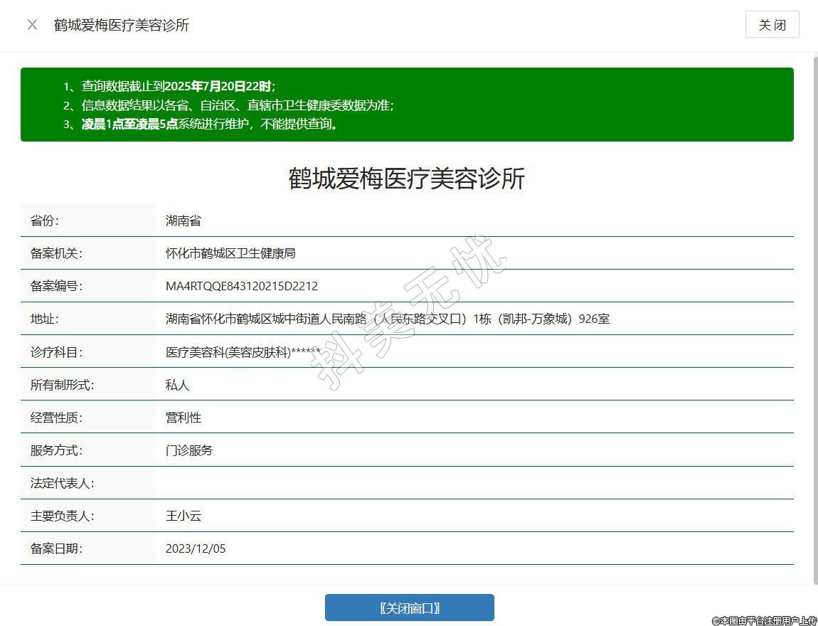懷化愛梅醫(yī)療美容診所成立于2020年,位于懷化市鶴城區(qū)城中街道人民南路與人民東路交匯處凱邦·萬象城1棟926室,以醫(yī)學美學為核心,配備標準化診療空間及現代化醫(yī)美設備,由執(zhí)業(yè)資質齊全的醫(yī)師團隊開展皮膚管理、微整形等合規(guī)項目,致力打造規(guī)范化醫(yī)療美容服務平臺。