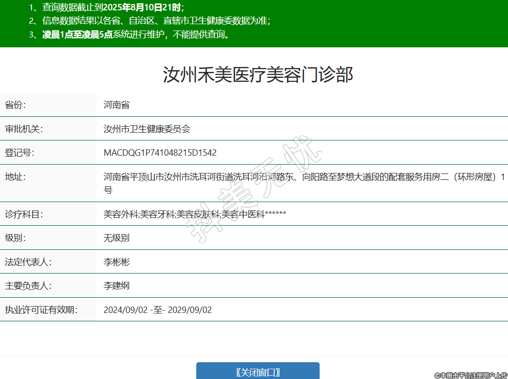 省份:河南省審批機(jī)關(guān):汝州市衛(wèi)生健康委員會(huì)登記號:MACDQG1P741048215D1542地址:河南省平頂山市汝州市洗耳河街道洗耳河沿河路東、向陽路至夢想大道段的配套服務(wù)用房二(環(huán)形房屋)1號診療科目:美容外科;美容牙科;美容皮膚科;美容中醫(yī)科******級別:無級別法定代表人:李彬彬主要負(fù)責(zé)人:李建綱執(zhí)業(yè)許可證有效期:2024/09/02 -至- 2029/09/02 -