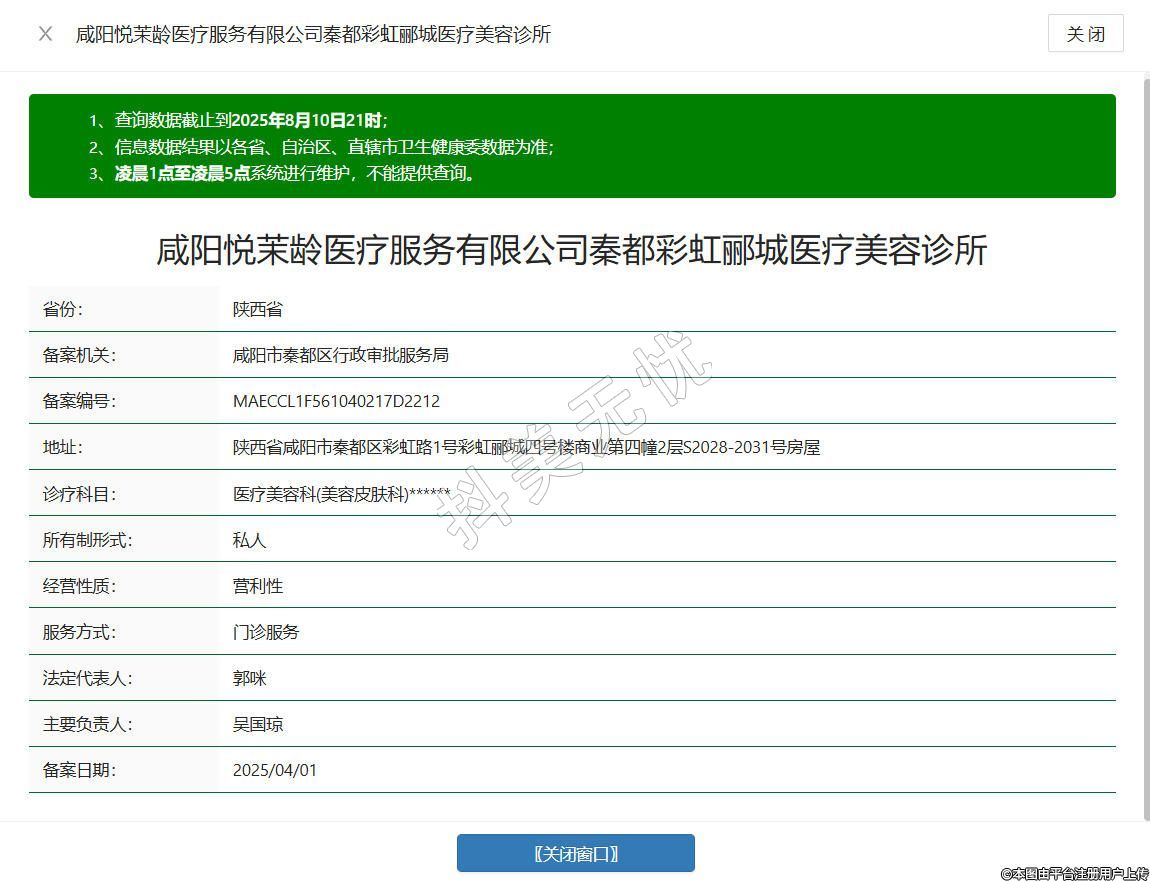 咸陽(yáng)悅茉齡醫(yī)療服務(wù)有限公司秦都彩虹酈城醫(yī)療美容診所