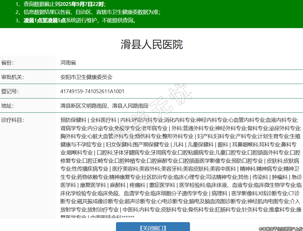 省份:河南省審批機(jī)關(guān):安陽(yáng)市衛(wèi)生健康委員會(huì)登記號(hào):41749159-741052611A1001地址:滑縣新區(qū)文明路南段、滑縣人民路南段診療科目:預(yù)防保健科 | 全科醫(yī)療科 | 內(nèi)科;呼吸內(nèi)科專業(yè);消化內(nèi)科專業(yè);神經(jīng)內(nèi)科專業(yè);心血管內(nèi)科專業(yè);血液內(nèi)科專業(yè);腎病學(xué)專業(yè);內(nèi)分泌專業(yè);免疫學(xué)專業(yè);老年病專業(yè) | 外科;普通外科專業(yè);神經(jīng)外科專業(yè);骨科專業(yè);泌尿外科專業(yè);胸外科專業(yè);心臟大血管外科專業(yè);燒傷科專業(yè);整形外科專業(yè) | 婦產(chǎn)科;婦科專業(yè);產(chǎn)科專業(yè);計(jì)劃生育專業(yè);生殖健康與不孕癥專業(yè) | 婦女保健科;圍產(chǎn)期保健專業(yè) | 兒科 | 兒童保健科 | 眼科 | 耳鼻咽喉科;耳科專業(yè);鼻科專業(yè);咽喉科專業(yè) | 口腔科;牙體牙髓病專業(yè);牙周病專業(yè);口腔粘膜病專業(yè);兒童口腔專業(yè);口腔頜面外科專業(yè);口腔修復(fù)專業(yè);口腔正畸專業(yè);口腔種植專業(yè);口腔麻醉專業(yè);口腔頜面醫(yī)學(xué)影像專業(yè);預(yù)防口腔專業(yè) | 皮膚科;皮膚病專業(yè);性傳播疾病專業(yè) | 醫(yī)療美容科;美容外科;美容牙科;美容皮膚科;美容中醫(yī)科 | 精神科;精神病專業(yè);精神衛(wèi)生專業(yè);藥物依賴專業(yè);精神康復(fù)專業(yè);社區(qū)防治專業(yè);臨床心理專業(yè);司法精神專業(yè);其他 | 傳染科 | 腫瘤科 | 急診醫(yī)學(xué)科 | 康復(fù)醫(yī)學(xué)科 | 麻醉科 | 疼痛科 | 重癥醫(yī)學(xué)科 | 醫(yī)學(xué)檢驗(yàn)科;臨床體液、血液專業(yè);臨床微生物學(xué)專業(yè);臨床化學(xué)檢驗(yàn)專業(yè);臨床免疫、血清學(xué)專業(yè);臨床細(xì)胞分子遺傳學(xué)專業(yè) | 病理科 | 醫(yī)學(xué)影像科;X線診斷專業(yè);CT診斷專業(yè);磁共振成像診斷專業(yè);超聲診斷專業(yè);心電診斷專業(yè);腦電及腦血流圖診斷專業(yè);神經(jīng)肌肉電圖專業(yè);介入放射學(xué)專業(yè);放射治療專業(yè) | 中醫(yī)科;內(nèi)科專業(yè);皮膚科專業(yè);骨傷科專業(yè);肛腸科專業(yè);針灸科專業(yè);推拿科專業(yè);康復(fù)醫(yī)學(xué)專業(yè) | 中西醫(yī)結(jié)合科******級(jí)別:三級(jí)法定代表人:李鳳壘主要負(fù)責(zé)人:執(zhí)業(yè)許可證有效期:2025/01/03 -至- 2035/12/28 -