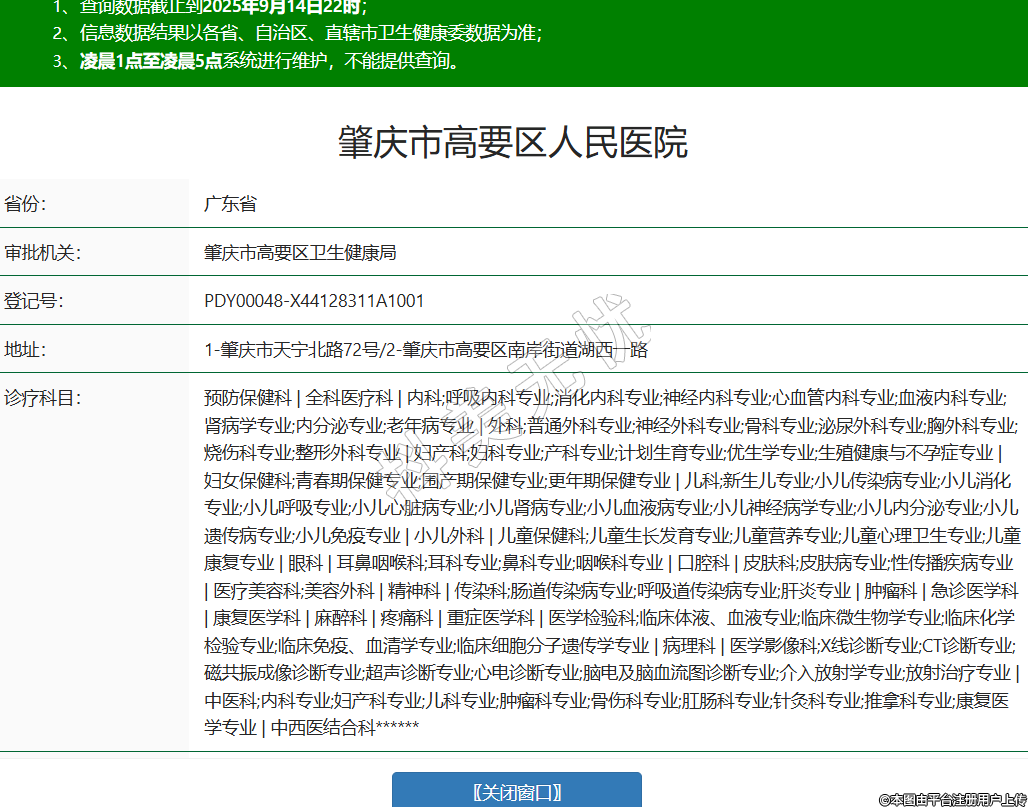 省份:廣東省審批機關(guān):肇慶市高要區(qū)衛(wèi)生健康局登記號:PDY00048-X44128311A1001地址:1-肇慶市天寧北路72號/2-肇慶市高要區(qū)南岸街道湖西一路診療科目:預(yù)防保健科 | 全科醫(yī)療科 | 內(nèi)科;呼吸內(nèi)科專業(yè);消化內(nèi)科專業(yè);神經(jīng)內(nèi)科專業(yè);心血管內(nèi)科專業(yè);血液內(nèi)科專業(yè);腎病學(xué)專業(yè);內(nèi)分泌專業(yè);老年病專業(yè) | 外科;普通外科專業(yè);神經(jīng)外科專業(yè);骨科專業(yè);泌尿外科專業(yè);胸外科專業(yè);燒傷科專業(yè);整形外科專業(yè) | 婦產(chǎn)科;婦科專業(yè);產(chǎn)科專業(yè);計劃生育專業(yè);優(yōu)生學(xué)專業(yè);生殖健康與不孕癥專業(yè) | 婦女保健科;青春期保健專業(yè);圍產(chǎn)期保健專業(yè);更年期保健專業(yè) | 兒科;新生兒專業(yè);小兒傳染病專業(yè);小兒消化專業(yè);小兒呼吸專業(yè);小兒心臟病專業(yè);小兒腎病專業(yè);小兒血液病專業(yè);小兒神經(jīng)病學(xué)專業(yè);小兒內(nèi)分泌專業(yè);小兒遺傳病專業(yè);小兒免疫專業(yè) | 小兒外科 | 兒童保健科;兒童生長發(fā)育專業(yè);兒童營養(yǎng)專業(yè);兒童心理衛(wèi)生專業(yè);兒童康復(fù)專業(yè) | 眼科 | 耳鼻咽喉科;耳科專業(yè);鼻科專業(yè);咽喉科專業(yè) | 口腔科 | 皮膚科;皮膚病專業(yè);性傳播疾病專業(yè) | 醫(yī)療美容科;美容外科 | 精神科 | 傳染科;腸道傳染病專業(yè);呼吸道傳染病專業(yè);肝炎專業(yè) | 腫瘤科 | 急診醫(yī)學(xué)科 | 康復(fù)醫(yī)學(xué)科 | 麻醉科 | 疼痛科 | 重癥醫(yī)學(xué)科 | 醫(yī)學(xué)檢驗科;臨床體液、血液專業(yè);臨床微生物學(xué)專業(yè);臨床化學(xué)檢驗專業(yè);臨床免疫、血清學(xué)專業(yè);臨床細胞分子遺傳學(xué)專業(yè) | 病理科 | 醫(yī)學(xué)影像科;X線診斷專業(yè);CT診斷專業(yè);磁共振成像診斷專業(yè);超聲診斷專業(yè);心電診斷專業(yè);腦電及腦血流圖診斷專業(yè);介入放射學(xué)專業(yè);放射治療專業(yè) | 中醫(yī)科;內(nèi)科專業(yè);婦產(chǎn)科專業(yè);兒科專業(yè);腫瘤科專業(yè);骨傷科專業(yè);肛腸科專業(yè);針灸科專業(yè);推拿科專業(yè);康復(fù)醫(yī)學(xué)專業(yè) | 中西醫(yī)結(jié)合科******級別:三級法定代表人:杜國聰主要負責(zé)人:杜國聰執(zhí)業(yè)許可證有效期:2024/07/25 -至- 2033/12/31 -