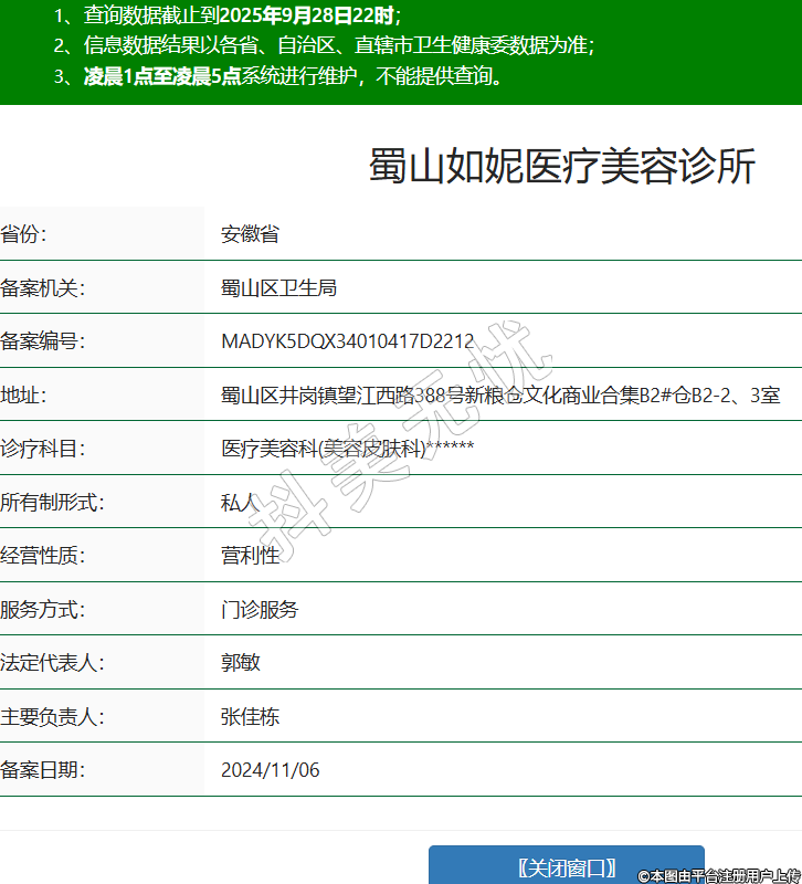 省份:安徽省備案機(jī)關(guān):蜀山區(qū)衛(wèi)生局備案編號:MADYK5DQX34010417D2212地址:蜀山區(qū)井崗鎮(zhèn)望江西路388號新糧倉文化商業(yè)合集B2#倉B2-2、3室診療科目:醫(yī)療美容科(美容皮膚科)******所有制形式:私人經(jīng)營性質(zhì):營利性服務(wù)方式:門診服務(wù)法定代表人:郭敏主要負(fù)責(zé)人:張佳棟備案日期:2024/11/06 -