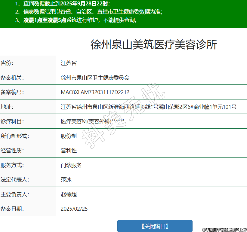 省份:江蘇省備案機(jī)關(guān):徐州市泉山區(qū)衛(wèi)生健康委員會備案編號:MAC8XLAM732031117D2212地址:江蘇省徐州市泉山區(qū)新淮海西路延長線1號麓山榮郡2區(qū)6#商業(yè)幢1單元101號診療科目:醫(yī)療美容科(美容外科)******所有制形式:股份制經(jīng)營性質(zhì):營利性服務(wù)方式:門診服務(wù)法定代表人:范冰主要負(fù)責(zé)人:趙德超備案日期:2025/02/25 -