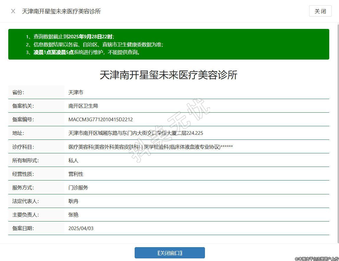 天津星璽未來醫(yī)療美容診所成立于2023年,位于天津市南開區(qū)城廂東路與東門內大街交口榮佳大廈二層224.225,是經天津市南開區(qū)市場監(jiān)督管理局核準設立的正規(guī)醫(yī)療美容機構,合法開展醫(yī)療美容服務與生活美容服務等許可項目,由具備專業(yè)資質的醫(yī)護人員組成,秉持合規(guī)診療原則,提供涵蓋皮膚美容、注射微整形等常見醫(yī)療美容項目,始終以規(guī)范醫(yī)療為基石,致力于為顧客提供安全、合規(guī)的醫(yī)療美容服務。