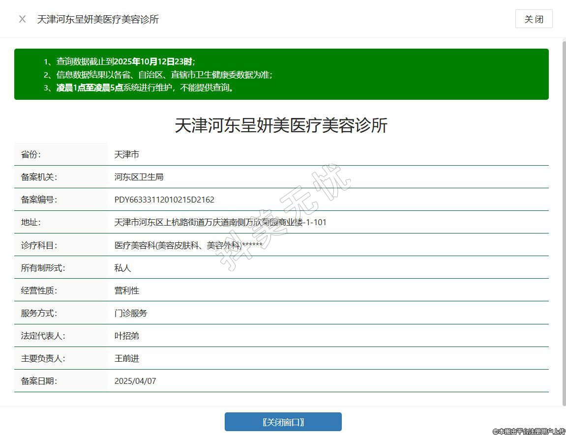 天津呈妍美醫(yī)療美容診所成立于2023年,位于天津市河?xùn)|區(qū)上杭路街道萬慶道南側(cè)萬欣菊園商業(yè)樓-1-101,是經(jīng)批準(zhǔn)設(shè)立的正規(guī)醫(yī)療美容機(jī)構(gòu),,持有醫(yī)療美容服務(wù)等相關(guān)行政許可,合規(guī)開展醫(yī)療美容業(yè)務(wù),配備無菌手術(shù)室及專業(yè)設(shè)備,有著專業(yè)的醫(yī)生團(tuán)隊,秉持規(guī)范執(zhí)業(yè)理念,以合規(guī)資質(zhì)為基石,以專業(yè)團(tuán)隊為支撐,專注為顧客提供嚴(yán)謹(jǐn)、可靠的醫(yī)療美容服務(wù)。