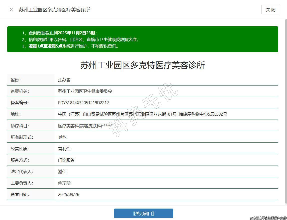 蘇州多克特醫(yī)療美容診所成立于2024年,位于中國(江蘇)自由貿(mào)易試驗區(qū)蘇州片區(qū)蘇州工業(yè)園區(qū)八達街181號1幢建屋購物中心5層L502號,作為合規(guī)經(jīng)營的醫(yī)療美容機構(gòu),診所持有相關(guān)執(zhí)業(yè)許可,經(jīng)營范圍涵蓋醫(yī)療美容服務(wù)、生活美容服務(wù)等許可項目,秉持 “讓抗衰回歸醫(yī)療本質(zhì)” 的理念,組建了專業(yè)的醫(yī)療團隊,注重個性化方案定制,依托規(guī)范的醫(yī)療流程與合格的診療材料,為顧客提供安心的醫(yī)療美容體驗。