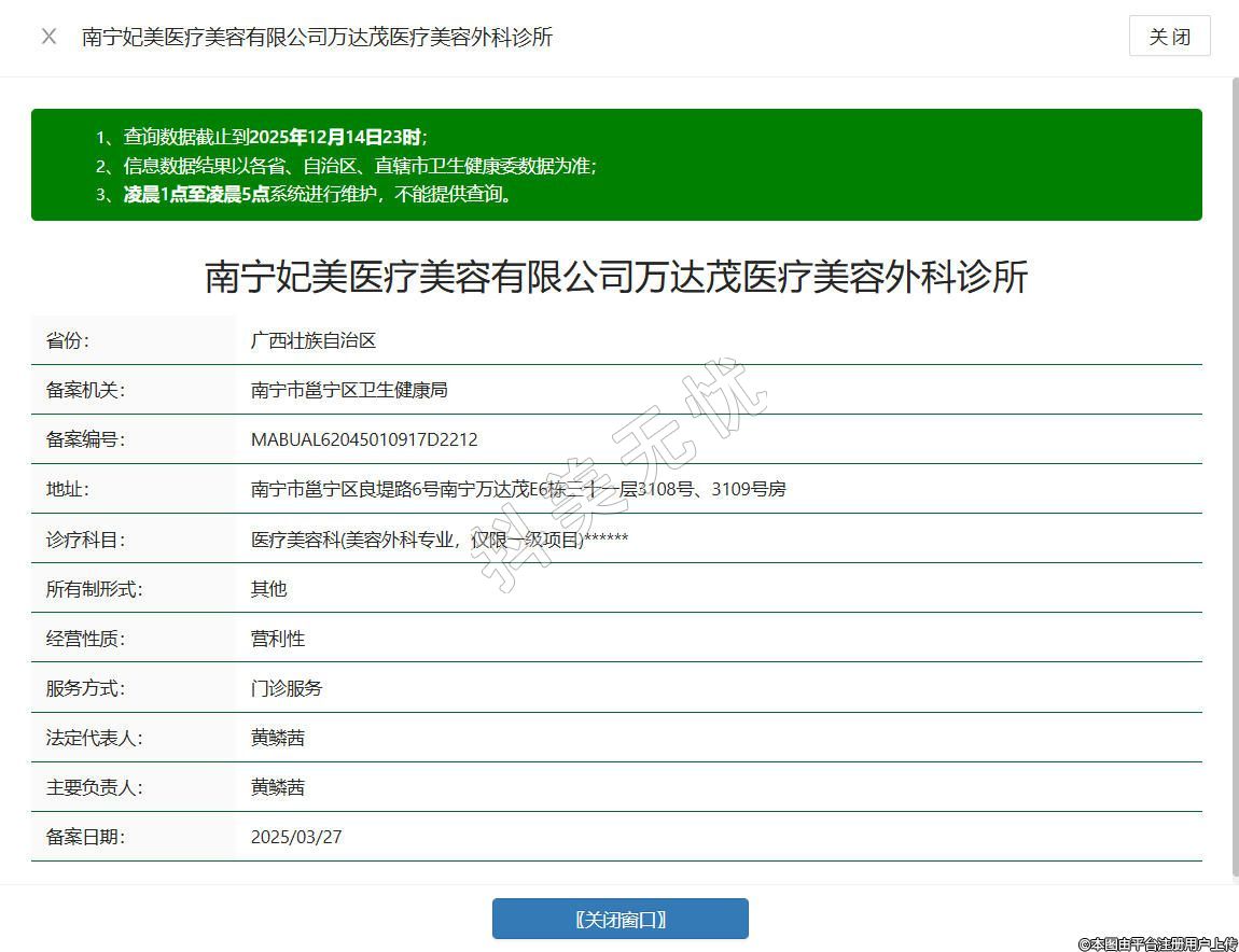 南寧妃美醫(yī)療美容診所成立于2022年,位于南寧市邕寧區(qū)良堤路6號南寧萬達(dá)茂E6棟三十一層3108號、3109號房,是經(jīng)南寧市行政審批局備案的正規(guī)醫(yī)美機構(gòu),持有合法醫(yī)療美容資質(zhì),專注開展美容外科一級項目,堅守 “安全塑美、專業(yè)立院” 的核心理念,依托規(guī)范的醫(yī)療流程與舒適的診療環(huán)境,涵蓋基礎(chǔ)醫(yī)美、皮膚護(hù)理等相關(guān)服務(wù),讓專業(yè)醫(yī)美貼近大眾需求,成為邕城愛美人士信賴的醫(yī)美選擇。