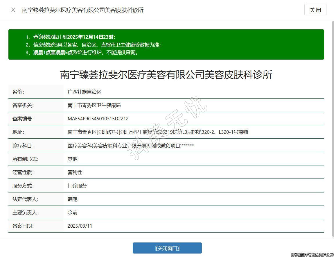 南寧臻薈拉斐爾醫(yī)療美容診所成立于2024年,位于南寧市青秀區(qū)長(zhǎng)虹路7號(hào)長(zhǎng)虹萬(wàn)科里商場(chǎng)第S2S319棟第L3層的第320-2、L320-1號(hào)商鋪,是經(jīng)南寧市青秀區(qū)衛(wèi)生健康局備案的合規(guī)醫(yī)療美容機(jī)構(gòu),專注醫(yī)療美容科(美容皮膚科專業(yè)),限開(kāi)展微創(chuàng)或無(wú)創(chuàng)項(xiàng)目,匯聚了涵蓋美容外科、皮膚美容等領(lǐng)域的專業(yè)醫(yī)護(hù)團(tuán)隊(duì),配備專業(yè)醫(yī)美設(shè)備,結(jié)合個(gè)性化診療思路,為顧客提供規(guī)范、安心的醫(yī)療美容服務(wù)。