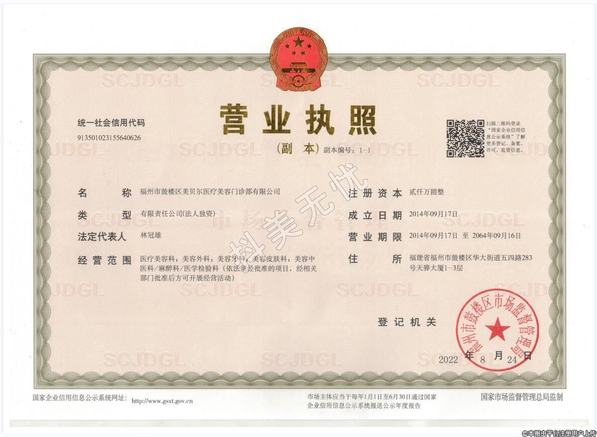 機(jī)構(gòu)名稱:福州鼓樓美貝爾醫(yī)療美容門診部