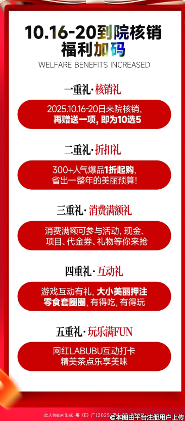 10月16-20日來院核銷門票,項(xiàng)目再加送1項(xiàng),從10選4升級為10選5?。ㄕ酆舷聛恚骄坏?0塊錢薅1個(gè)爆款項(xiàng)目,做夢都會笑醒~)