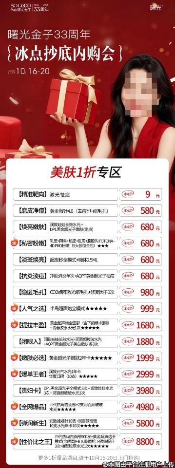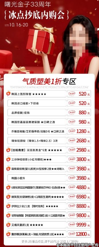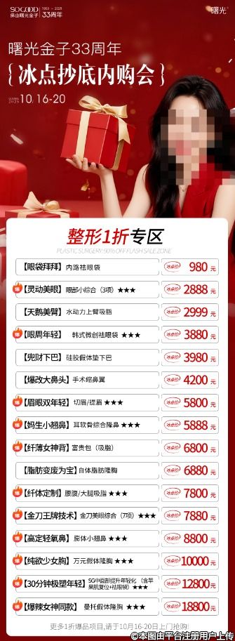 33周年超級千萬補(bǔ)貼派送,平時(shí)不舍得買的大項(xiàng)目:抗衰年卡、貴婦卡、全臉/形體塑形、眼鼻胸整形,這次直接抄底1折價(jià)拿下!